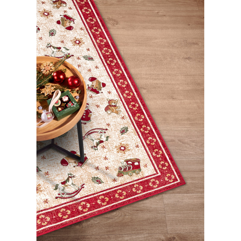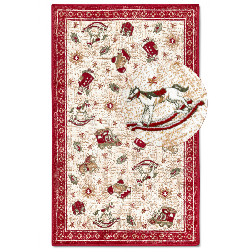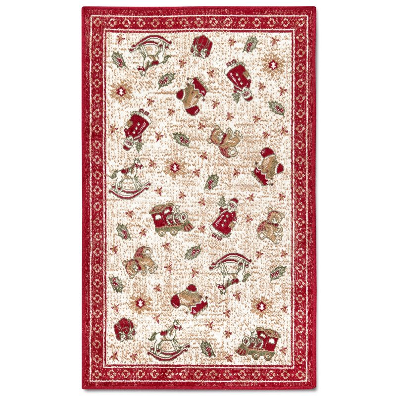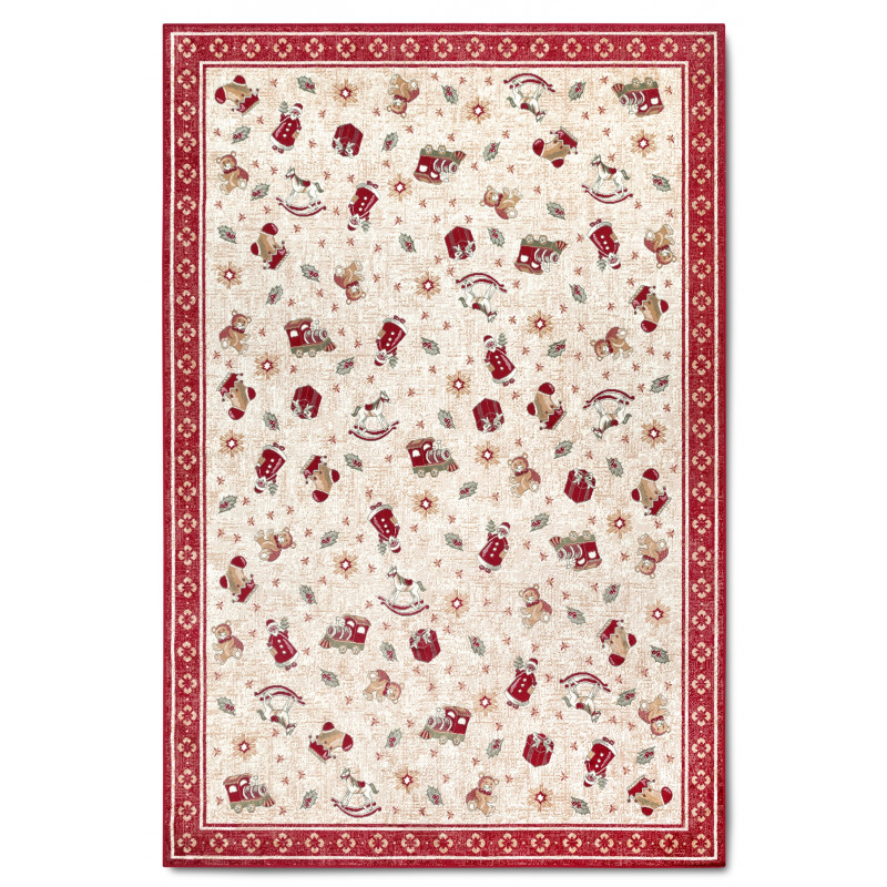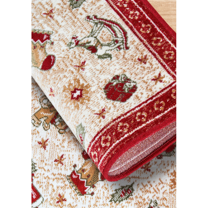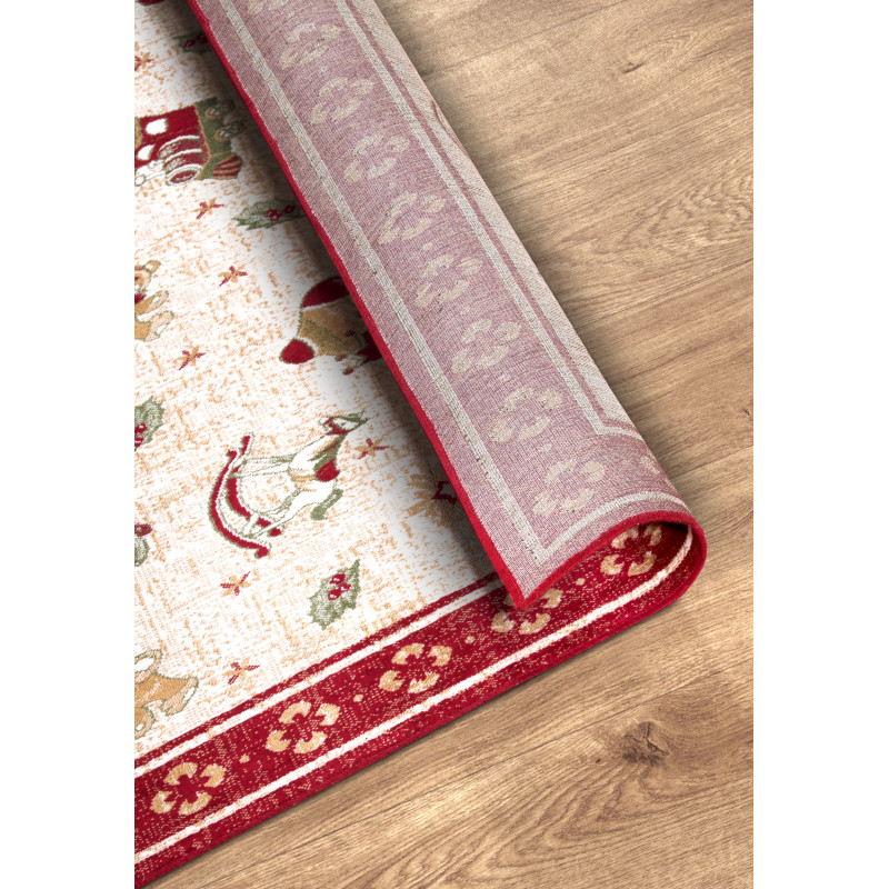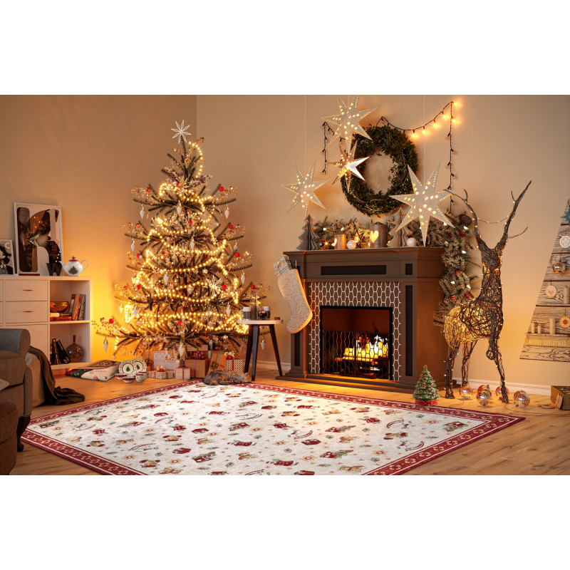 Tento koberec do vášho domova jednoznačne vnesie kúzlo Vianoc! Na jeho béžovom podklade sa rozprestierajú klasické vianočné motívy, ktoré navodia slávnostnú atmosféru plnú radosti a pohody. Červené lemovanie dodáva kobercu štýlový nádych a upúta pozornosť každého návštevníka. Protišmyková spodná vrstva zaisťuje, že koberec lepšie drží na svojom mieste, či...