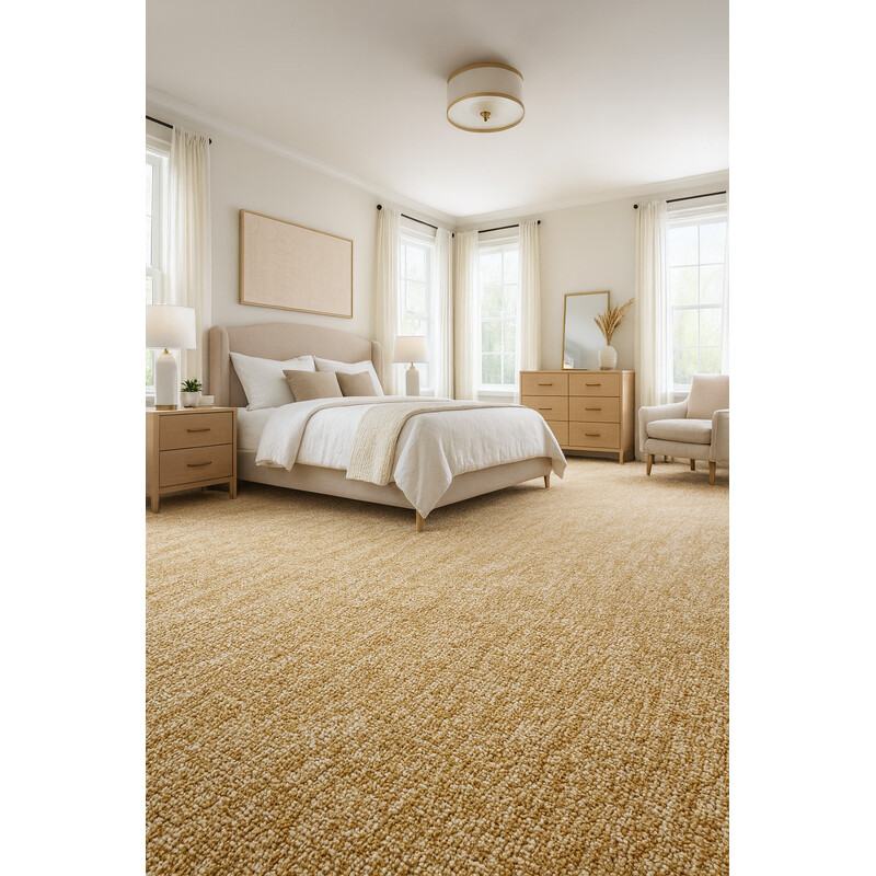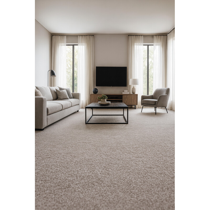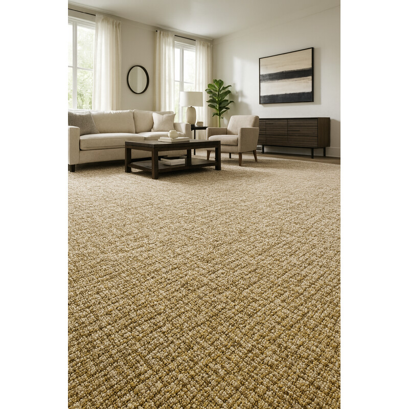 Béžový vlnený metrážny koberec, ktorý má množstvo nesporných výhod. Napríklad perfektne izoluje chlad, tlmí kročajový hluk a pohlcuje prach. To všetko zaisťuje vlna ako prírodný izolant. Stredne vysoký slučkový vlas je odolný a ľahko udržateľný. Koberec má protišmykovú podložku actionback zo syntetickej juty a je kompatibilný s podlahovým kúrením.