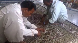 Pokiaľ sa zistí, že sa osnova alebo vzor koberca mierne rozchádza, pracovníci vezmú špeciálny nástroj pripomínajúci dláto a s jeho pomocou uzlíčky vyrovnajú jeden po druhom. Prvý opravár bije malým kladivkom do nástroja a uzlíky posúva, druhý mu dvoma kovovými tyčkami koberec drží, aby sa neposúvali miesta, ktoré sú v poriadku.