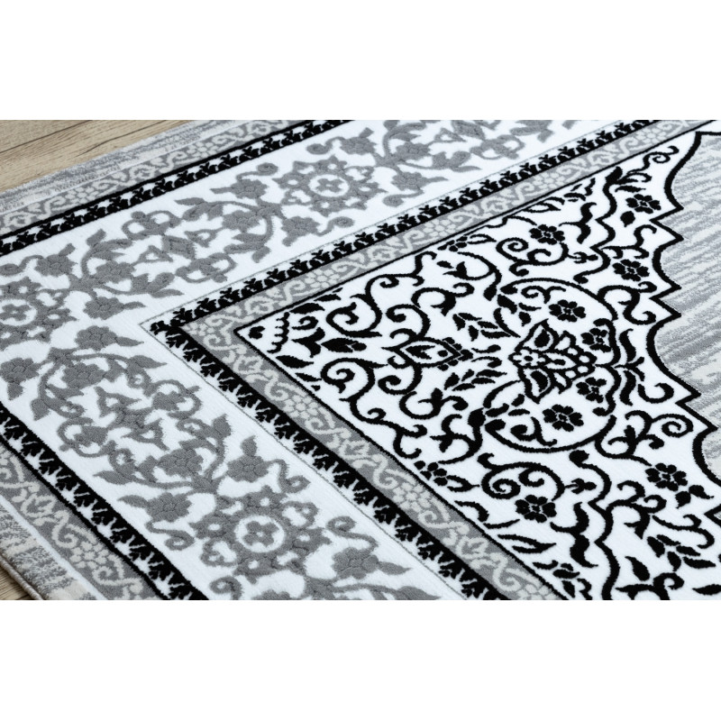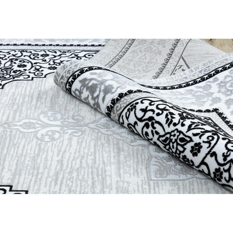 Koberec Gloss ornament je veľmi zaujímavý a originálny. Svetlé telo koberca so šedým vzorom vytvorí v miestnosti zaujímavý prvok, ktorý vykúzli estetický a luxusný stredobod miestnosti. Vďaka použitému materiálu je koberec stály a odolný. Vlákna vlasov sú tvorené do 3D efektu, ktorý umocňuje moderný a luxusný vzhľad.