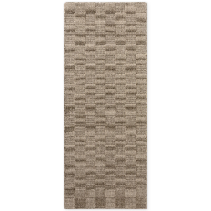 Tmavo béžový až hnedý behúň sa vyznačuje plastickým štvorcovým motívom, ktorý vytvára pôsobivý 3D efekt a opticky pripomína šachovnicu. Kombinácia prírodných tónov dodá interiéru teplý a útulný charakter, zatiaľ čo ručne tkaná vlna zaisťuje vysokú odolnosť aj dlhú životnosť. Povrch je príjemný na dotyk a vďaka svojim vlastnostiam tiež tlmí hluk a...