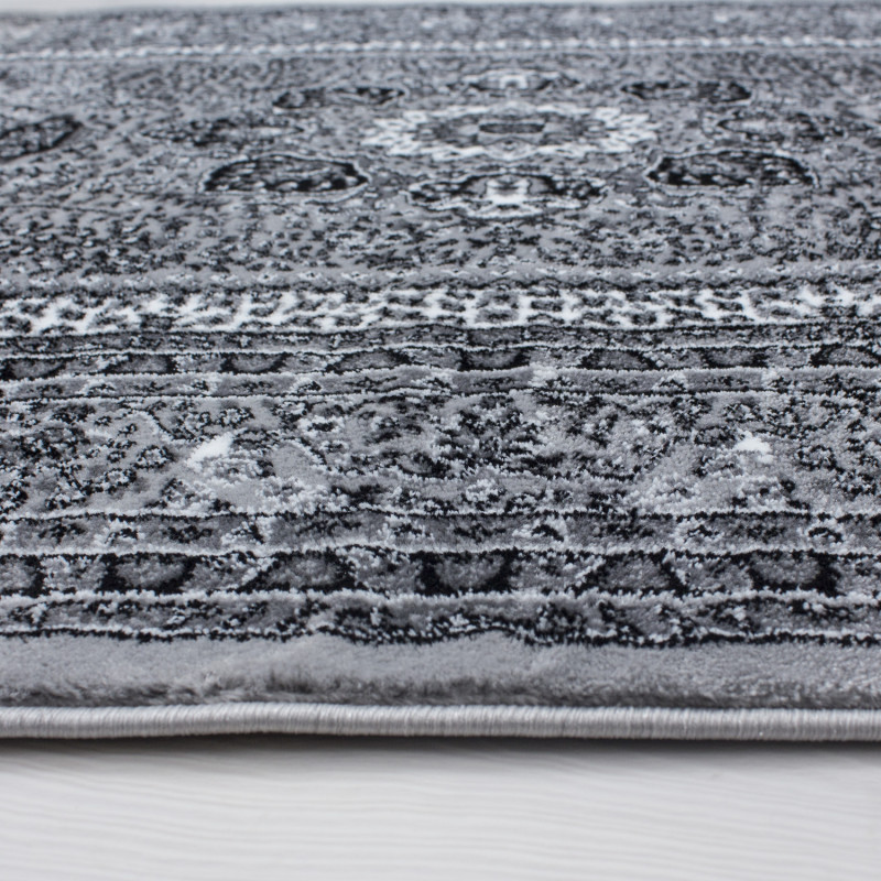 Šedý kusový koberec s prepracovaným orientálnym vzorom, ktorý bol za použitia technológie heatset vyrobený zo 100% polypropylénového vlákna. Tento koberec disponuje vyššou hustotou vlasu, čo je u kobercov jedna z najdôležitejších vlastností. Poteší aj ľahkou údržbou či antistatickou úpravou.