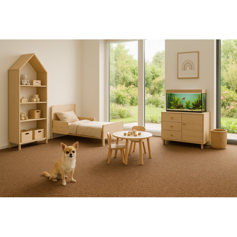 Slučkový metrážny koberec Rambo-Bet 60 vo veľmi zaujímavej hnedej farbe s odleskami zlatej a svetlo béžovej. Nízky slučkový vlas dáva koberce veľkú odolnosť a stálosť. Rambo-bet je navrhnutý odolávať vyššej záťaži a pri tom zachovať si svoj krásny vzhľad aj po rokoch používania. Ďalšou veľkou výhodou nízkeho slučkového vlasu je jednoduché čistenie a...
