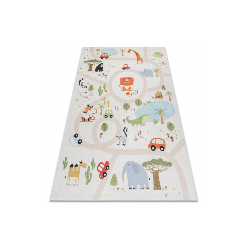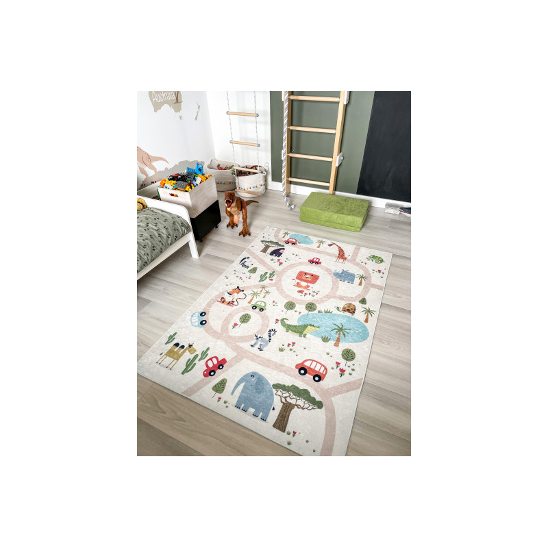 Fantastický koberec do detskej izby, ktorý poteší chlapcov aj dievčatá. Koberec nemá klasický vlas, ale je vyrobený zo 100% polyesteru utkaného do nízkych, pevne utiahnutých slučiek, na ktorej je natlačený vzor. Vďaka tomu sa koberec ľahko čistí. Polyester je navyše jemný materiál, preto ani slučkový koberec nie je tvrdý. Skrátka ideálny koberec na detské...