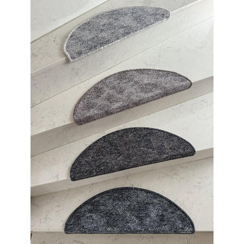 Šedé polkruhové nášľapy Madrid sa vyrábajú v Českej republike zo 100% polypropylénového vlákna. Jedná sa o pevné slučkové koberce, ktoré chránia Vaše schodisko pred zbytočným opotrebením. Sú obšité chemlonom na všetkých svojich stranách a potešia aj prítomnosťou lišty pre lepšie prichytenie.