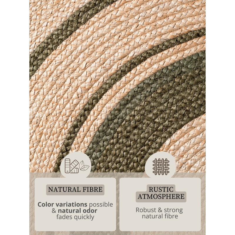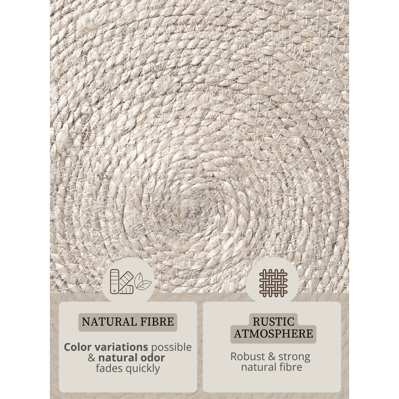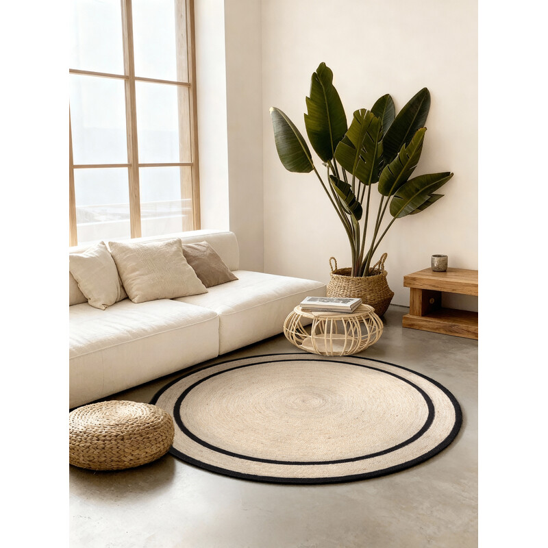 Čierny kruhový koberec upúta pozornosť svojim výrazným a zároveň nečakaným vzhľadom. Je vyrobený zo 100% prírodnej juty, ktorá je netradične zafarbená na čierno - riešenie, ktoré sa u tohto materiálu objavuje len zriedka a dodáva kobercu výnimočný charakter. Jemne pletená štruktúra zachováva prirodzenú textúru juty, zatiaľ čo tmavý odtieň vytvára moderný...