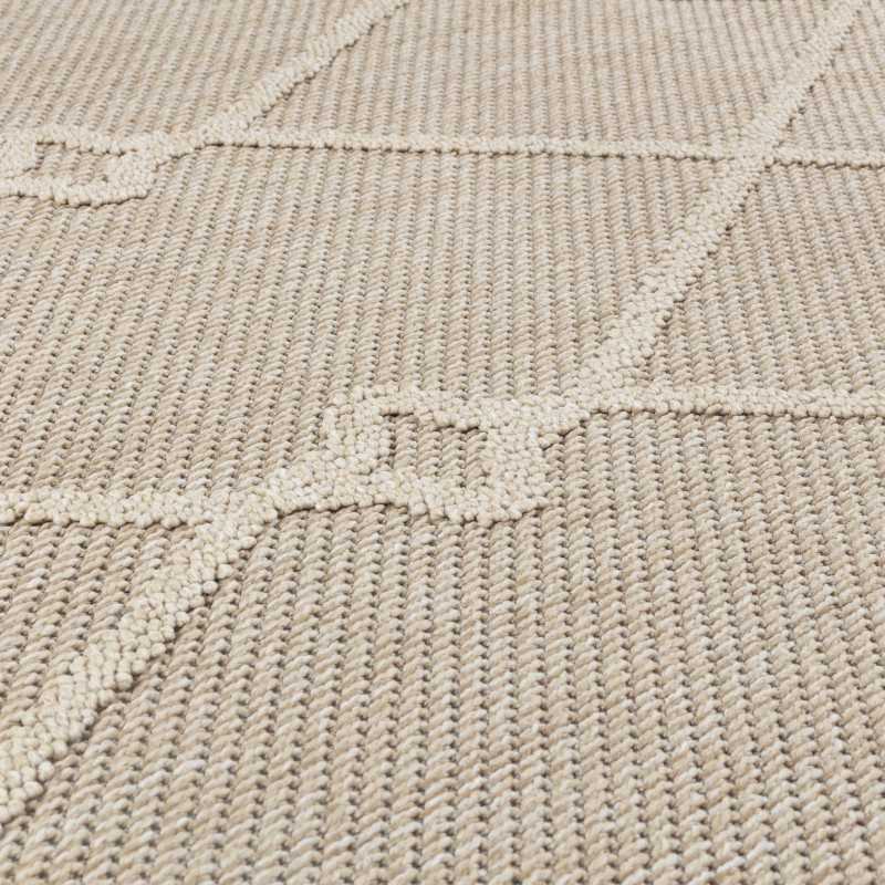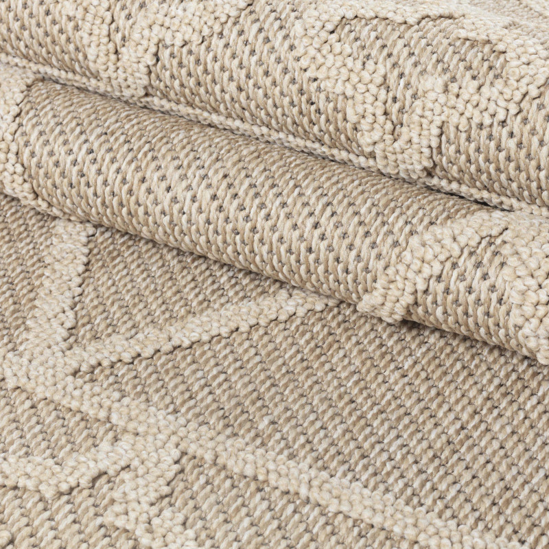 Béžový koberec so zaujímavými tvarmi, ktoré navyše vystupujú a vytvárajú tak 3D efekt. Okrem plastického motívu Vás koberec poteší aj množstvom praktických vlastností. Napríklad je odolný voči poveternostným vplyvom, a preto nájde uplatnenie doma aj v exteriéri. Ďalej je obšitý po celom obvode, antistatický a ľahký na údržbu.