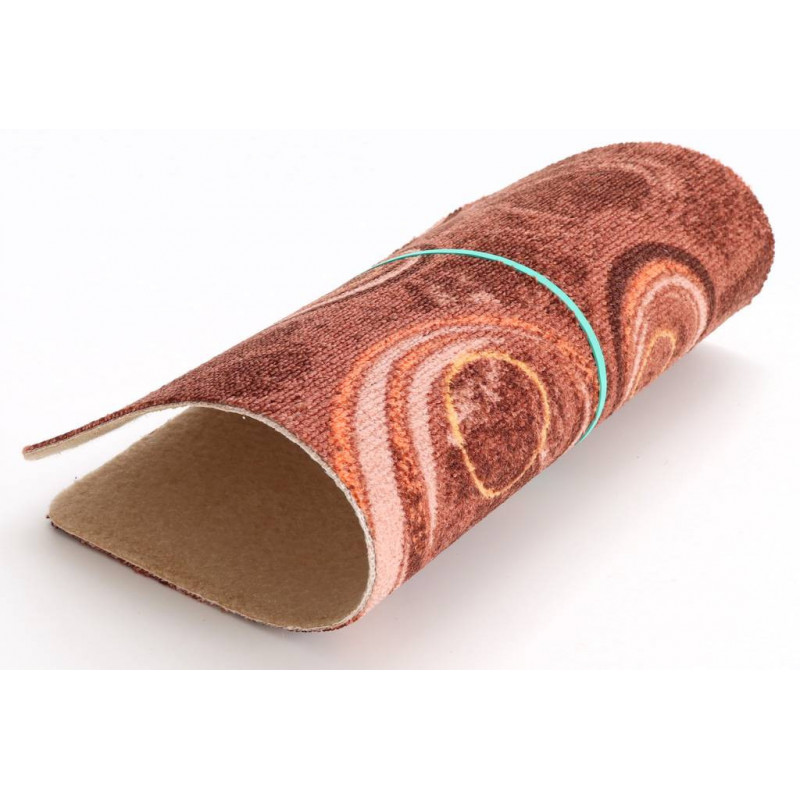 Bytový koberec s výrazným plastickým vzorom vhodný do stredne zaťažených bytových priestorov z kolekcie Bella Marbella. Je v tmavo hnedej farbe. Koberec je možné položiť na podlahové vykurovanie. Podklad je tvorený filcom, vďaka tomu je koberec príjemný a teplý.