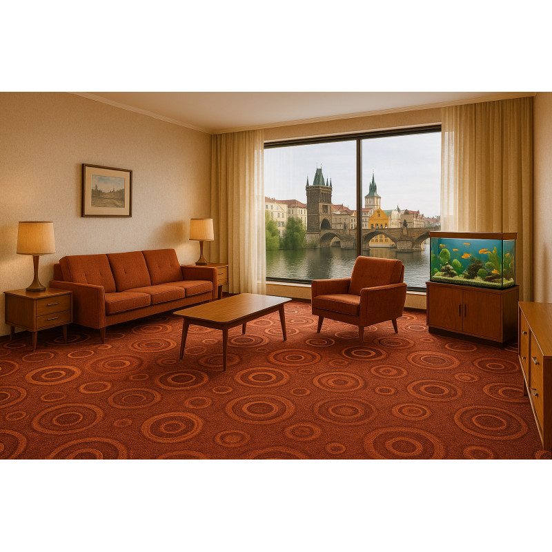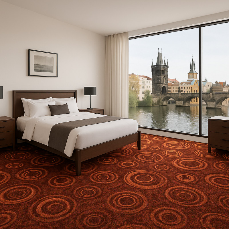 Decentné a napriek tomu veľmi zaujímavý a originálny metrážny koberec v tmavo hnedom odtieni z kolekcie Drops. Koberec sa hodí sa stredne namáhaných bytových priestorov a zaručuje stálofarebnosť na slnku. Výhodou koberca je, že ho môžete bez problému použiť aj na podlahové vykurovanie.