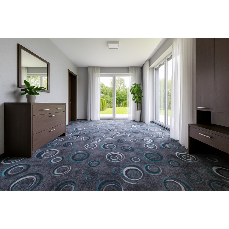 Moderné kusový koberec z farebnou potlačou v podobe kruhov v modrých odtieňoch. Tento metrážny koberec z kolekcie Drops pôsobí veľmi originálne a rozveselí každý priestor. Koberec sa bude veľmi dobre čistiť, môžete ho tam bez problémov použiť aj do detskej izby. Koberec je tiež možné položiť na podlahové vykurovanie.