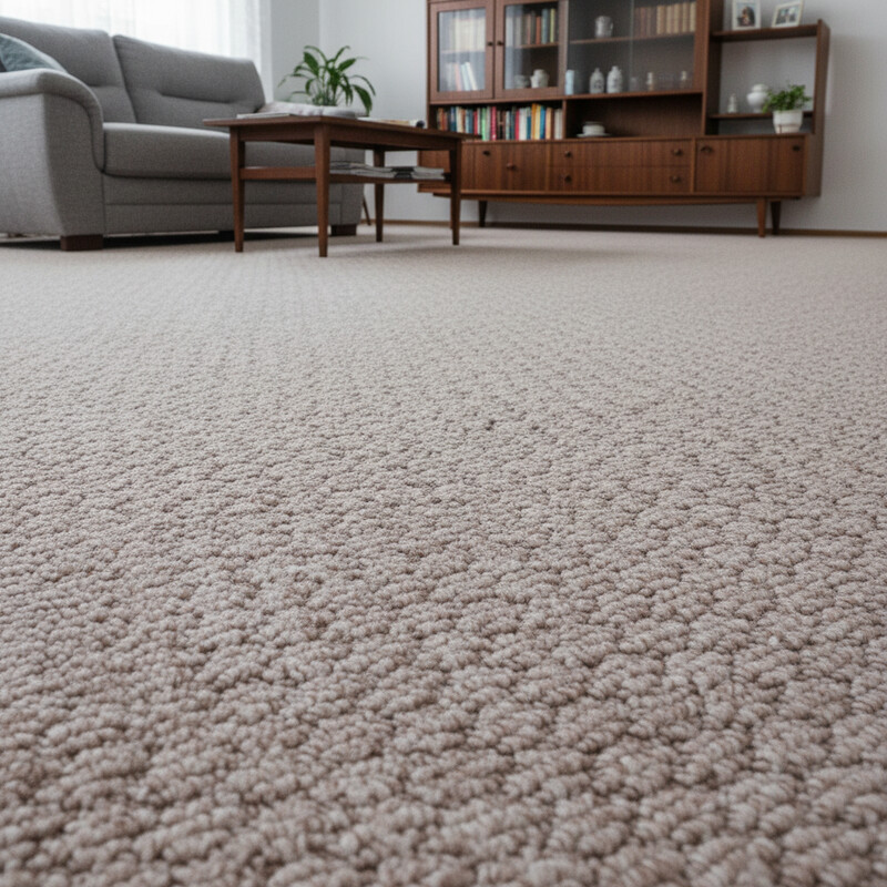 Metrážny koberec Efekt 5151 je vyrobený zo 100% polypropylénového vlákna a má krátky smyčkový vlas. Preto je koberec odolný a ľahký na údržbu. Medzi jeho ďalšie prednosti patrí efektívna izolácia krokového hluku, skvelé tepelnoizolačné vlastnosti, či kompatibilita s podlahovým kúrením aj kolieskami stoličiek.