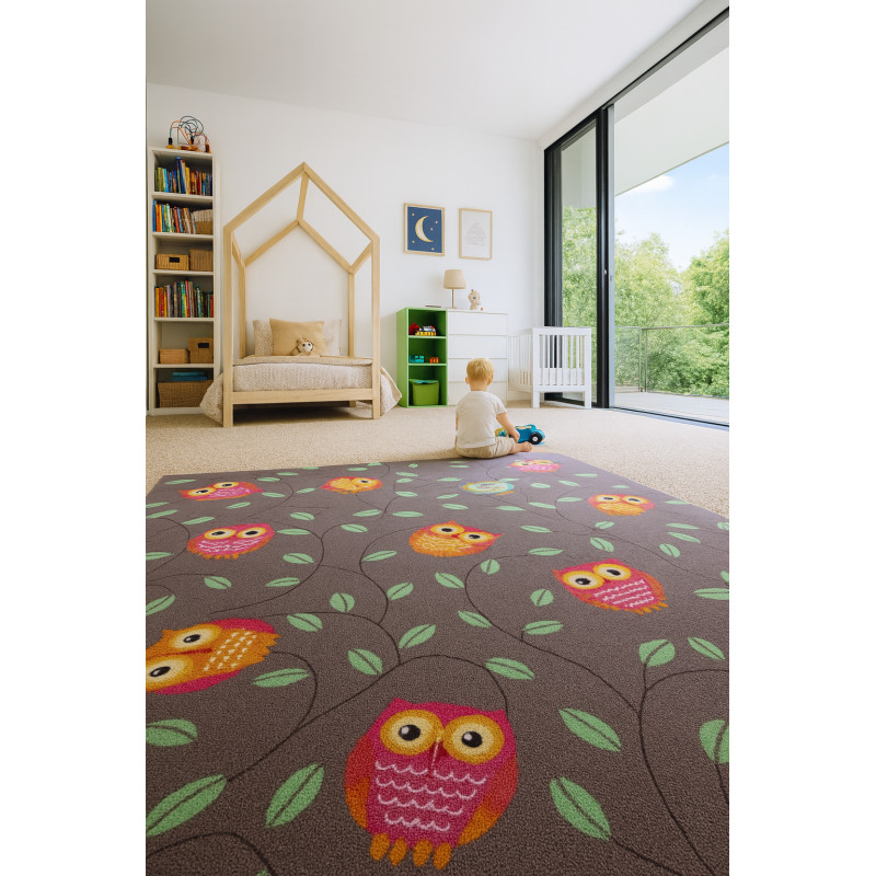 Detský metrážny koberec Little Owls je ideálnou voľbou do každej detskej izby! Tento hravý a pritom univerzálny koberec v hnědé farbe je ozdobený roztomilými kreslenými sovičkami, ktoré zaujmú každé dieťa. Vďaka nízkemu slučkovému vlasu z polyamidu je koberec príjemný na dotyk, veľmi odolný a ľahko udržiavateľný. Spodná vrstva z filcu zaisťuje skvelú...