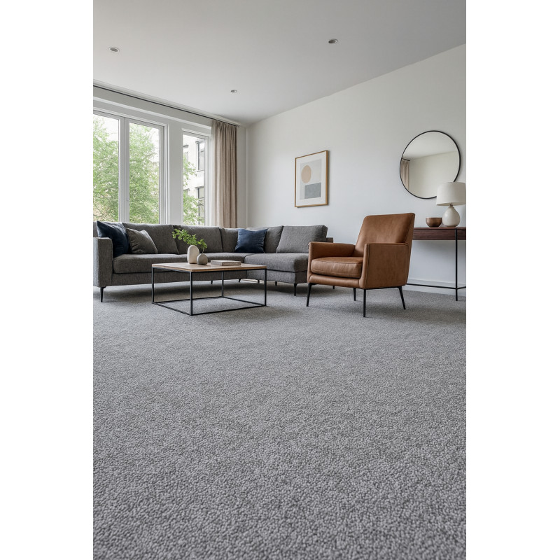 Metrážny koberec Prestige 482 v odtieni šedej s jemnými modrými odleskami je dokonalou voľbou pre moderné interiéry. Tento farebný tón pôsobí elegantne, nadčasovo a zároveň prináša do priestoru unikátnu hĺbku vďaka zaujímavému efektu melírovania. Šedá farba sa skvele hodí do minimalistických obývacích izieb, kde podčiarkne jednoduchosť a čisté línie...