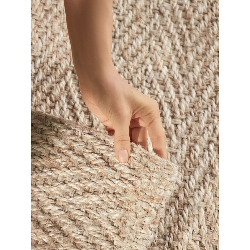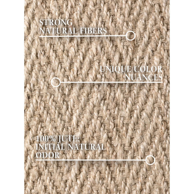 Okrúhly koberec Jutta z ručne tkanej prírodnej juty v prírodných tónoch slonovinovej, šedej a béžovej je jedinečný prírodný doplnok do interiéru aj na krytú terasu. Každý kus je originál vďaka ručnému spracovaniu a prírodne farbeným vláknam. Odolný, antistatický, certifikovaný OEKO-TEX a vhodný aj pre podlahové kúrenie.