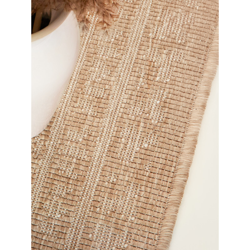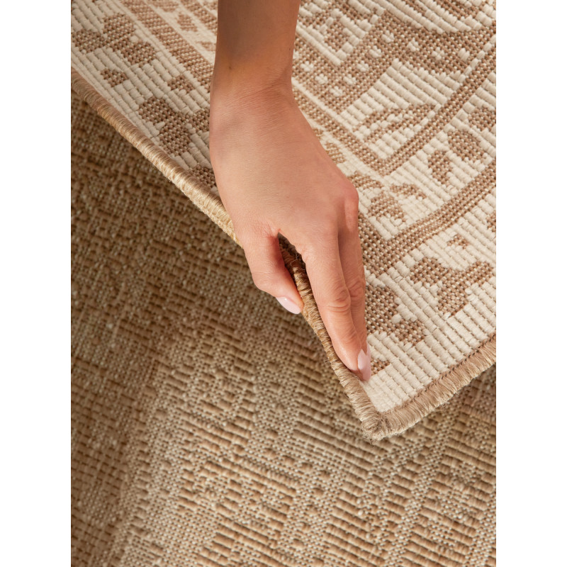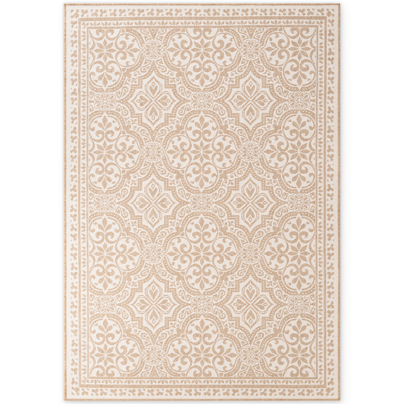 Obdĺžnikový koberec Duet v jemnej kombinácii béžovej a bielej poteší nielen vzhľadom, ale aj svojou univerzálnosťou – hodí sa do obývačky, spálne, pracovne aj na terasu. Vďaka odolnému materiálu zvládne každodennú prevádzku doma aj vonku a pritom nestratí na elegancii.