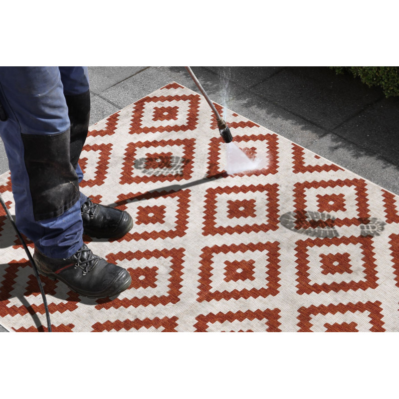 Moderné kusový koberec z kolekcie Twin-Wendeteppiche nemeckej značky Hansa Home. Koberec je v terakotovej (oranžovo-hnedé) a béžovej farbe a je obojstranný. Koberec Twin-Wendeteppiche 103130 bude skvelý doplnok ako do interiéru, tak na Vašu vonkajšiu terasu.