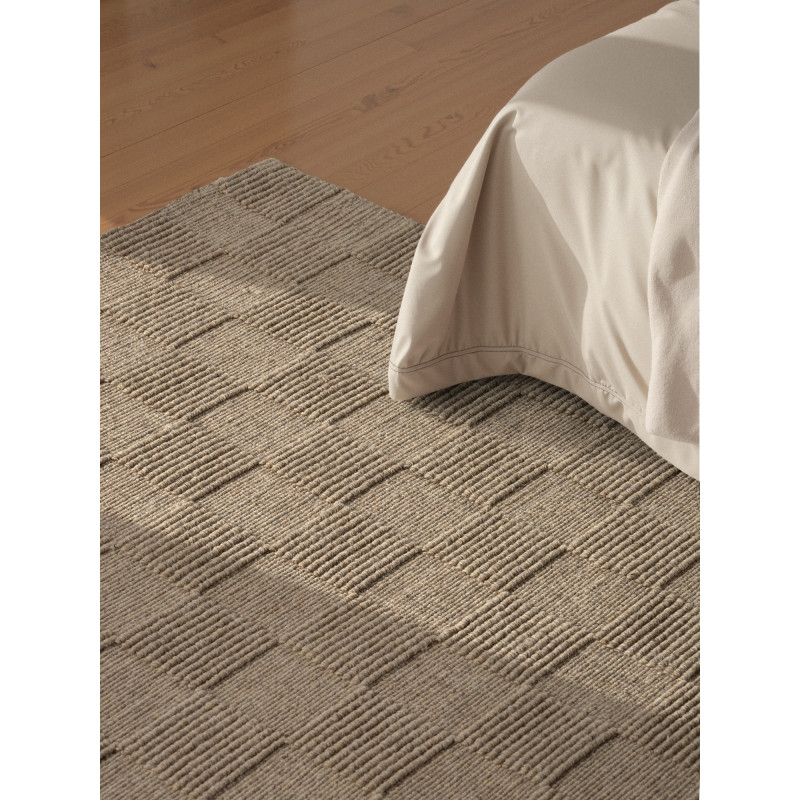 Tmavo béžový až hnedý koberec sa vyznačuje plastickým štvorcovým motívom, ktorý vytvára pôsobivý 3D efekt a opticky pripomína šachovnicu. Kombinácia prírodných tónov dodá interiéru teplý a útulný charakter, zatiaľ čo ručne tkaná vlna zaisťuje vysokú odolnosť aj dlhú životnosť. Povrch je príjemný na dotyk a vďaka svojim vlastnostiam tiež tlmí hluk a...