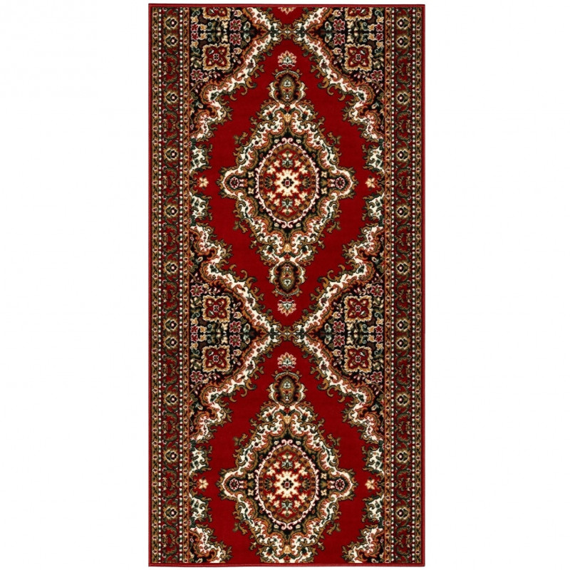 Tmavočervený behúň s perzským motívom bude ozdobou každej domácnosti. Môže sa pýšiť mnohými praktickými vlastnosťami. Je kompatibilný s podlahovým kúrením, farebne stály, odolný proti vlhkosti a úspešne tlmí kročajový hluk. Vďaka gélovej podložke je protišmykový a neposúva sa. ✓ Behúň je obšitý zo všetkých 4 strán.