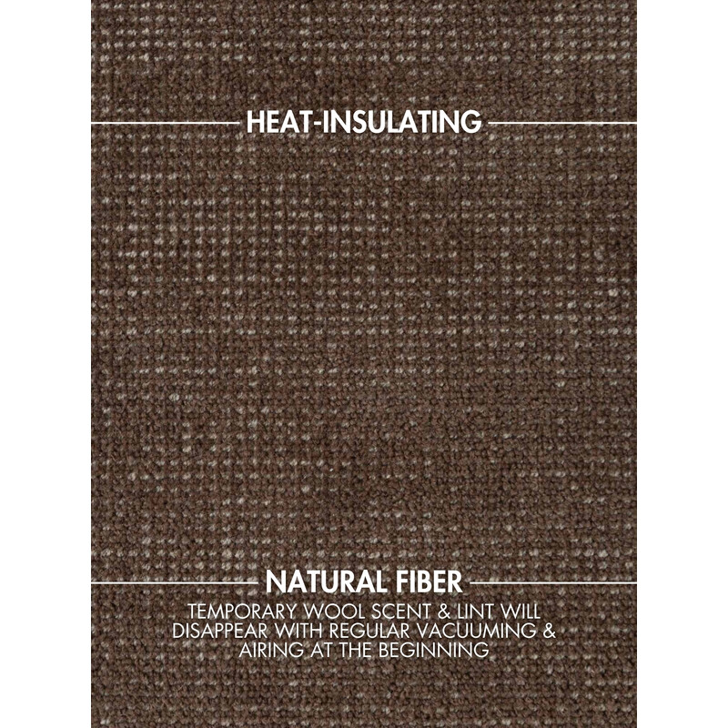 Vlna je prírodný materiál, ktorý je hrejivý, mäkký a veľmi príjemný na došľap. Vie regulovať vlhkosť, tlmiť hluk a je prirodzene odolná. Skvele sa hodí do obývačky alebo spálne 🌿. Počítajte ale s tým, že vyžaduje šetrnejšiu údržbu a patrí skôr do pokojnejších domácností.