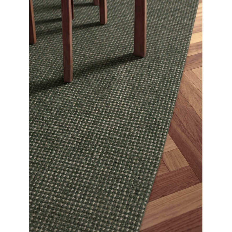 Dôležité je zvoliť dostatočne veľký koberec, aby na ňom zostali stoličky aj po odsunutí. Praktickou voľbou sú koberce s nižším vlasom alebo hladkým povrchom, ktoré sa lepšie udržujú a zvládnu aj omrvinky či menšie nehody.
