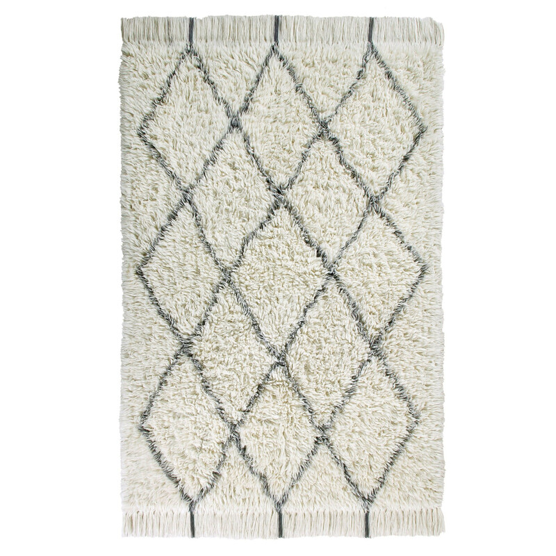 Ručne viazaný koberec v prírodnej farbe v obdĺžnikovom tvare kombinuje kvalitné spracovanie a estetiku do luxusného celku. Obšité zakončenie zaisťuje trvanlivosť aj eleganciu.