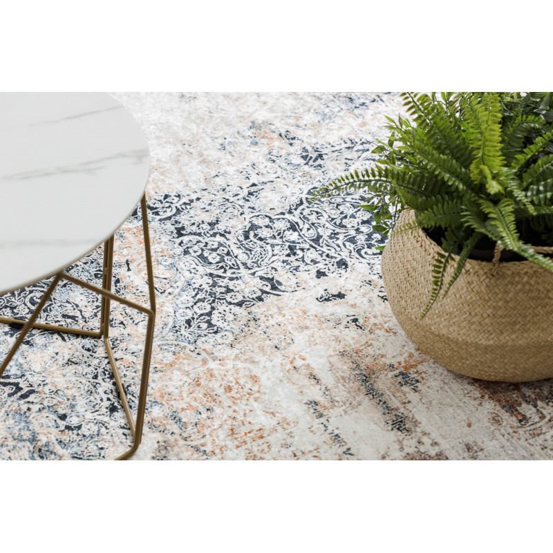 Koberec Andre Ornament 1187 s veľmi zaujímavým a tajuplným ornamentom. Má veľmi nízky strihaný vlas. Ide o koberec s veľmi jednoduchou údržbou. Na čistenie je možné využiť pranie pri teplote nepresahujúcej 30°C . Spodná strana je opatrená protišmykovou gumou, ktorá zaisťuje nekĺzanie koberca po podlahe. Hodí sa aj do priestorov s podlahovým vykurovaním....