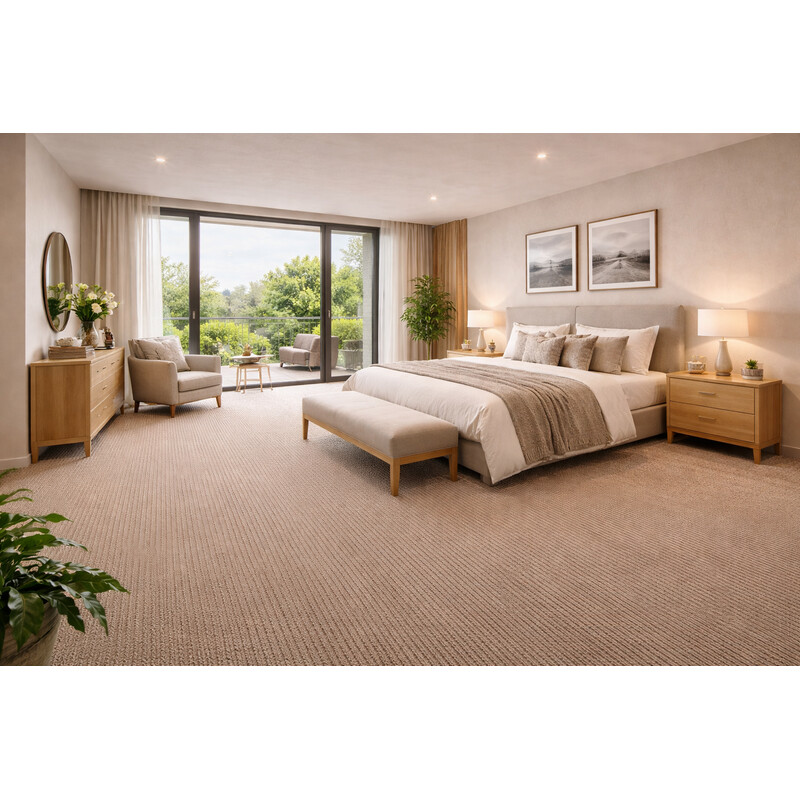 Koberec Velur Ultra v béžovej farbe vnesie do spálne svetlo a pokojnú atmosféru. Jeho univerzálny svetlý odtieň ľahko zapadne do akéhokoľvek interiéru a krásne rozjasní priestor bez toho, aby pôsobil rušivo. Béžová farba v spojení so svetlým nábytkom vytvára príjemné a minimalistické prostredie, ideálne na odpočinok. Nízky vlas zo strihaného polypropylénu...