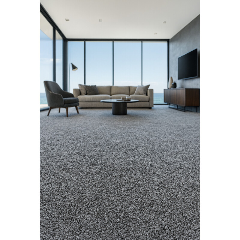 Metrážny koberec Prestige 482 v odtieni šedej s jemnými modrými odleskami je dokonalou voľbou pre moderné interiéry. Tento farebný tón pôsobí elegantne, nadčasovo a zároveň prináša do priestoru unikátnu hĺbku vďaka zaujímavému efektu melírovania. Šedá farba sa skvele hodí do minimalistických obývacích izieb, kde podčiarkne jednoduchosť a čisté línie...