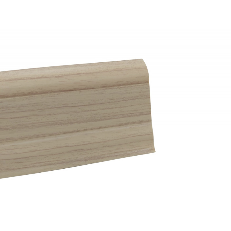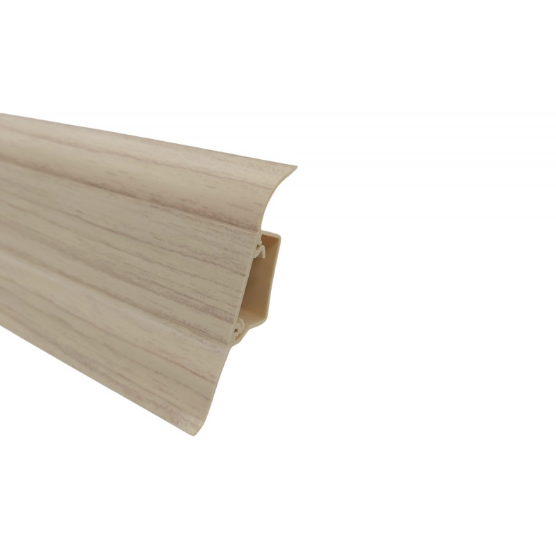 Soklová obvodová lišta SLK50 v dekore Jasanu pre použitie v kombinácii s PVC vrátane všetkých potrebných doplnkov ako sú rohy, spojky a koncovky. Táto lišta v sebe obsahuje káblový kanálik, kde kábel je možné ťahať aj cez jednotlivé komponenty. Lišta je opatrená mäkkými manžetami pri podlahe a stene. Vyrába sa z materiálu na báze PVC.