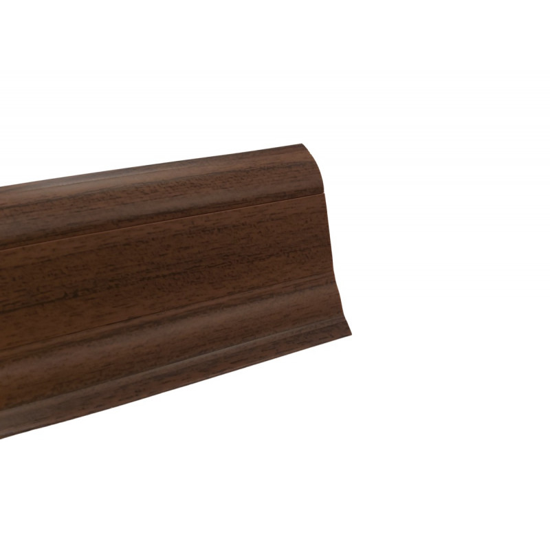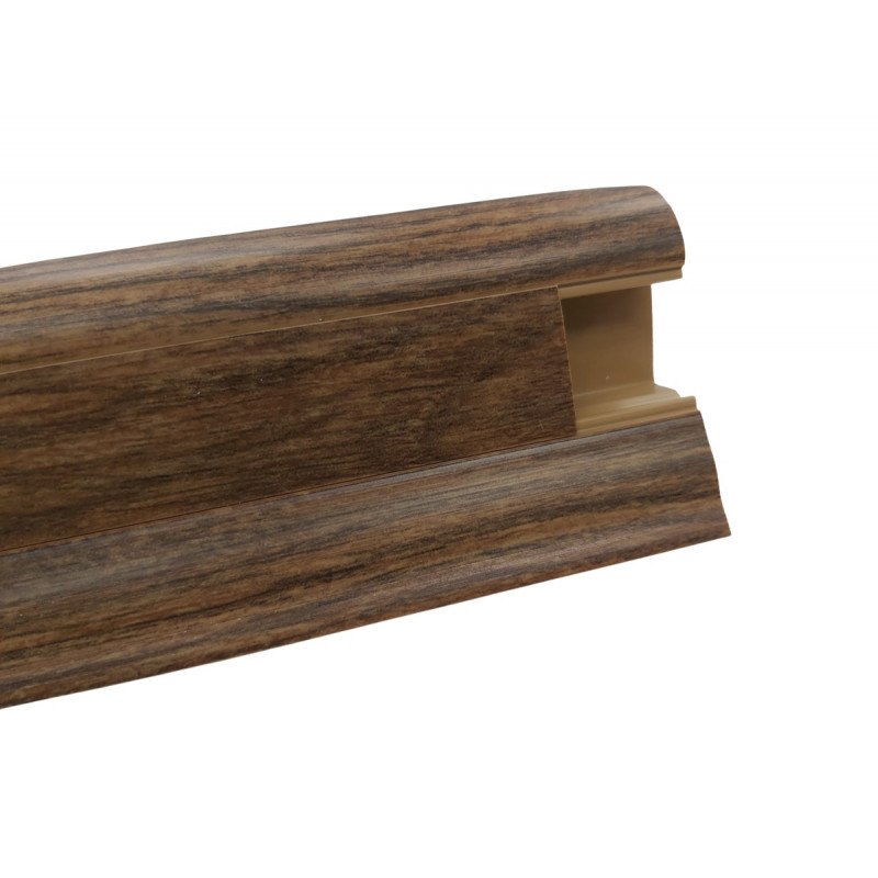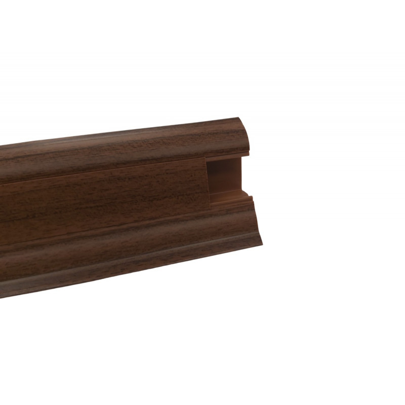 Soklová obvodová lišta SLK50 v dekore orechového dreva pre použitie v kombinácii s PVC vrátane všetkých potrebných doplnkov ako sú rohy, spojky a koncovky. Táto lišta v sebe obsahuje káblový kanálik, kde kábel je možné ťahať aj cez jednotlivé komponenty. Lišta je opatrená mäkkými manžetami pri podlahe a stene. Vyrába sa z materiálu na báze PVC.