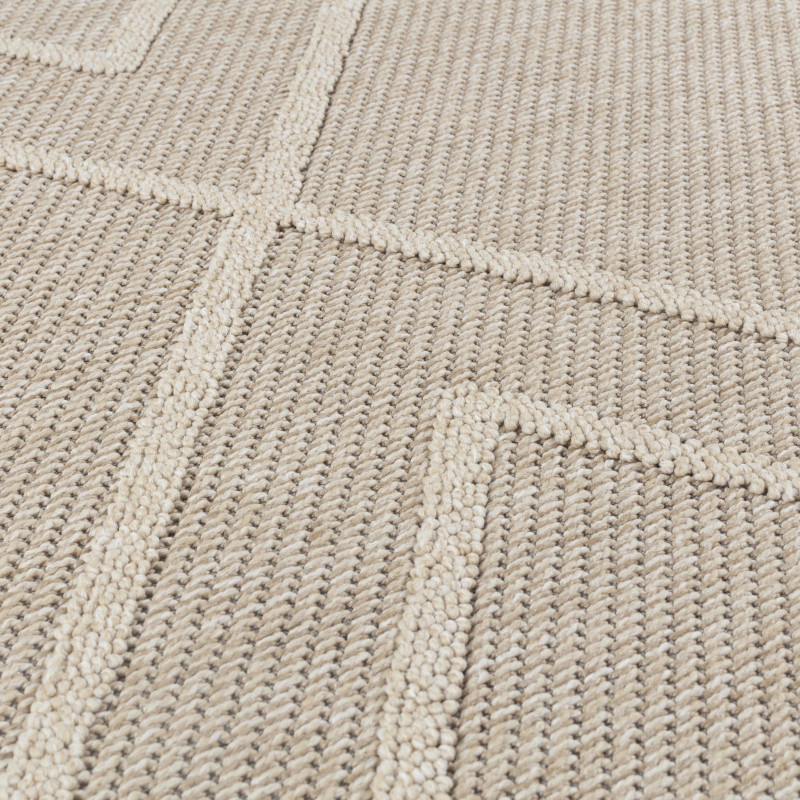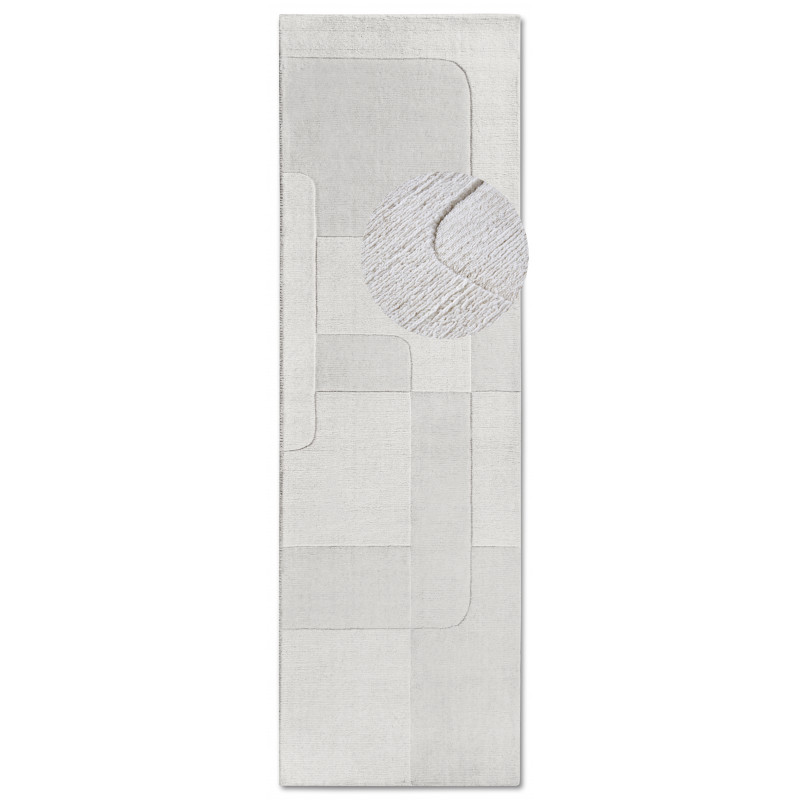 Behúň v krémovo bielej farbe s geometrickým 3D vzorom okamžite upúta svojim moderným a elegantným vzhľadom. Jeho stredne vysoký vlas je neuveriteľne príjemný na dotyk, čo oceníte pri každom kroku. Navyše, vďaka ručnému tkaniu metódou hand-loom a precíznemu obšitiu, je nielen krásny, ale aj odolný a vhodný aj pre podlahy s vykurovaním.