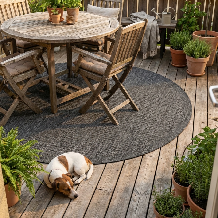 Rad Giza je presne ten kusový koberec, ktorý sa ničoho nezľakne. Boulá štruktúra z odolného polypropylénu im dáva pevnosť, že by pokojne mohli súťažiť s terasovým nábytkom o titul „železný držiak roka“. Vlas bucnuté je súčasťou koberca, takže žiadne vyšliapané cestičky, len spoľahlivá výdrž aj pri každodennej prevádzke. Koberce Giza zvládnu aj vonkajšie podmienky, takže na krytej terase, balkóne alebo pri vstupe bude vo svojom živle. Údržba je na pohodu. Zmetáčik, vysávač aj robot si s ním poradia ľavú zadnú. Pod stolom na terase urobí útulno, na balkóne dodá štýl a pri dverách vás privíta s eleganciou, ktorá niečo vydrží.