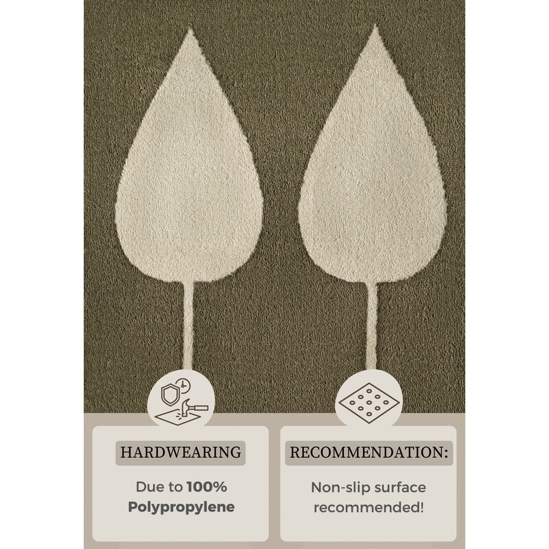Olivovo zelený detský koberec s motívom krémovo bielych lístkov vnesie do izbičky pokojnú a hravú atmosféru. Jemný dizajn inšpirovaný prírodou podnieti detskú predstavivosť a vytvorí príjemné prostredie pre hru aj odpočinok. Strihaný vlas strednej výšky je mäkký a ľahko sa udržuje, čo poteší rodičia aj deti. Koberec je plne kompatibilný s podlahovým...
