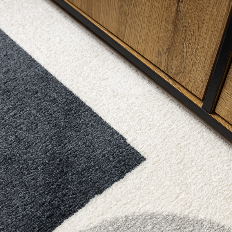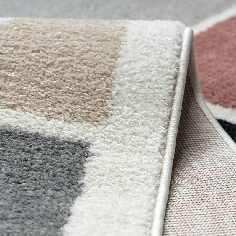 Koberec Fusion 0213 je ako moderný obraz pre vašu podlahu. Hrátky s tvarmi a farbami, krémová, šedá, béžová, ružová a čierna, vytvárajú hravú abstrakciu, ktorá sa skvele hodí do interiéru s charakterom. Hustý strihaný vlas z polypropylénu Soft je neuveriteľne jemný a príjemný na dotyk, takže sa po ňom budete radi prechádzať naboso. Výška vlasu 10 mm a...