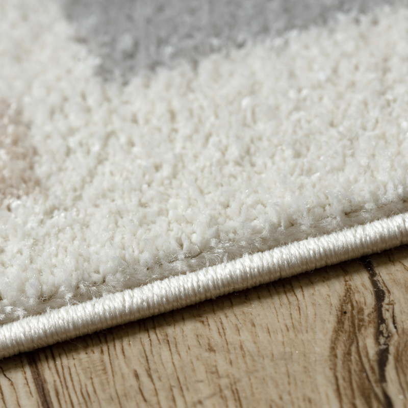 Koberec Fusion 9776 cream/beige na prvý pohľad pripomína štruktúru prírodného kameňa alebo jemne zvlnenej línie mramorovej dosky. Svetlé tóny béžovej a šedej sa prelínajú do decentného, ale veľmi elegantného vzoru, ktorý pôsobí luxusne a nadčasovo. Vďaka strihanému polypropylénovému vlasu je povrch mäkký, pohodlný pri chôdzi a ľahko sa udržuje. Obšitie po...