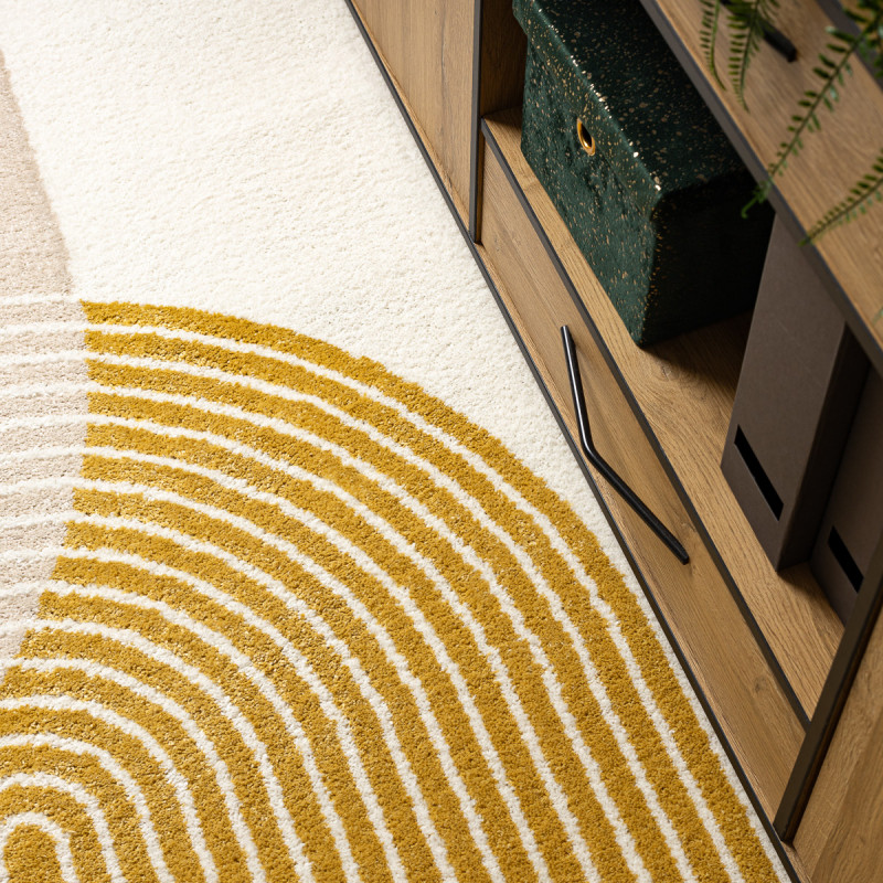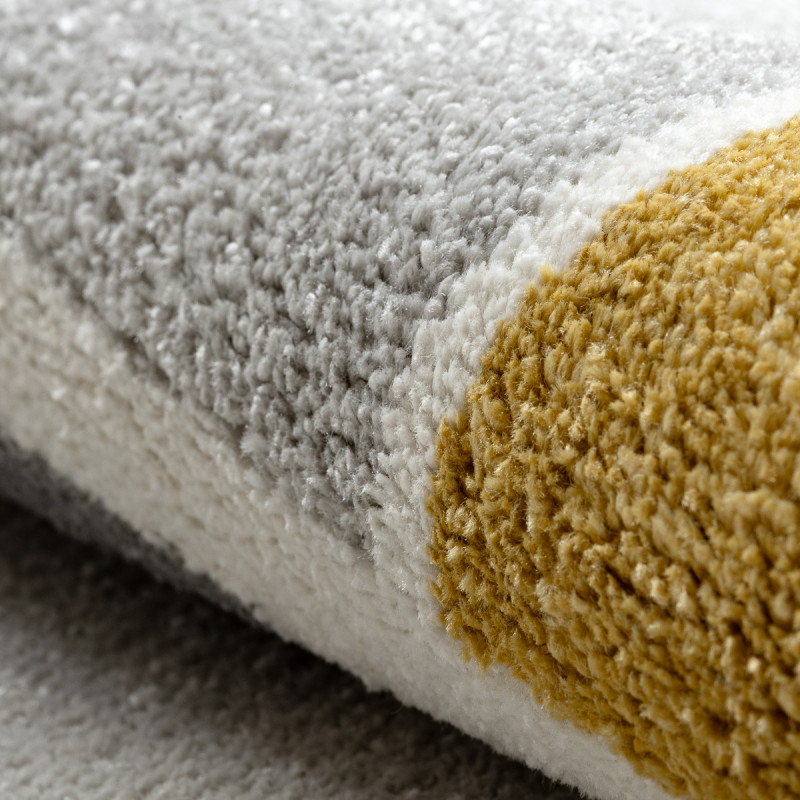 Koberec Fusion 0213 v bielo-žltom variante je svieži dizajnový kúsok, ktorý vdýchne energiu každej miestnosti. Originálny abstraktný vzor kombinuje tóny horčicovo žltej, antracitovej, béžovej a šedej na svetlom podklade, čo vytvára efekt modernej geometrie s umeleckým nádychom. Jemný strihaný vlas z polypropylénu Soft ponúka luxusnú mäkkosť a komfort pri...