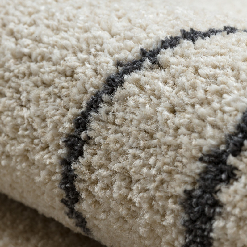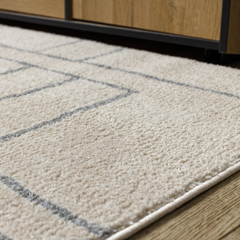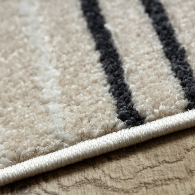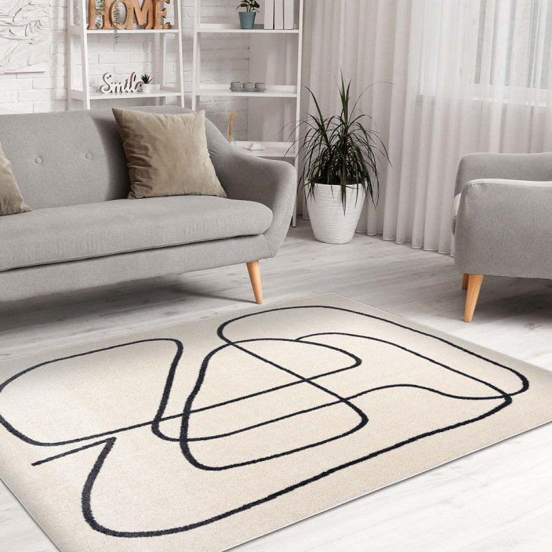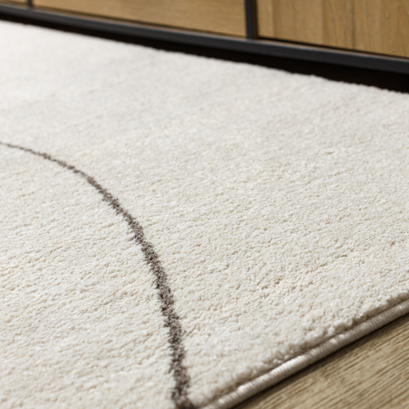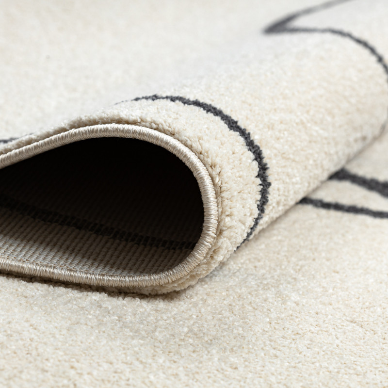 Koberec na prvý pohľad zaujme svojou jednoduchou, a napriek tomu výraznou estetikou. Krémovo svetlý podklad pôsobí čisto a jemne, zatiaľ čo čierna abstraktná línia, ktorá sa voľne kľukatí po celej ploche, dodáva kobercu moderný a umelecký charakter. Vďaka strihanému polypropylénovému vlasu je povrch hebký a príjemný na dotyk, zároveň ľahko udržiavateľný a...
