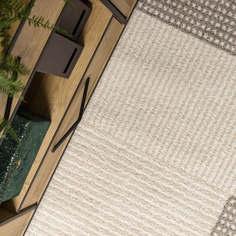 Koberec Fusion 9213 cream/beige koberec prináša do interiéru jemnú hru farieb, béžovej, hnedej a šedej plochy pôsobia pokojne a vyvážene, zatiaľ čo tenká čierna línia im dodáva šmrnc a dynamiku. Vďaka svojmu abstraktnému vzhľadu dokáže oživiť priestor bez toho, aby ho zahltil, a krásne sa prispôsobí ako modernému, tak minimalistickému zariadeniu. Vyrobený...