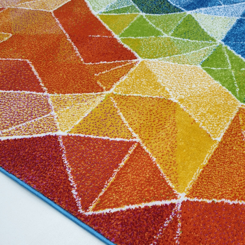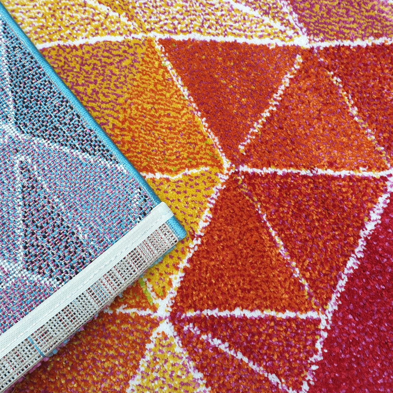 Moderný koberec Fantasy v zaujímavom farebnom prevedení s trojuholníkovým designom. Farby sú skutočne výrazné a spontánne. Jeho vlas je vyrobený z polypropylénu heatset free, ktorý mu prináša jemnosť v odolnom tele. Dĺžka vlasu je tak akurát, aby bol koberec jednoduchý na čistenie a pritom veľmi pohodlný na chôdzu alebo ležanie.