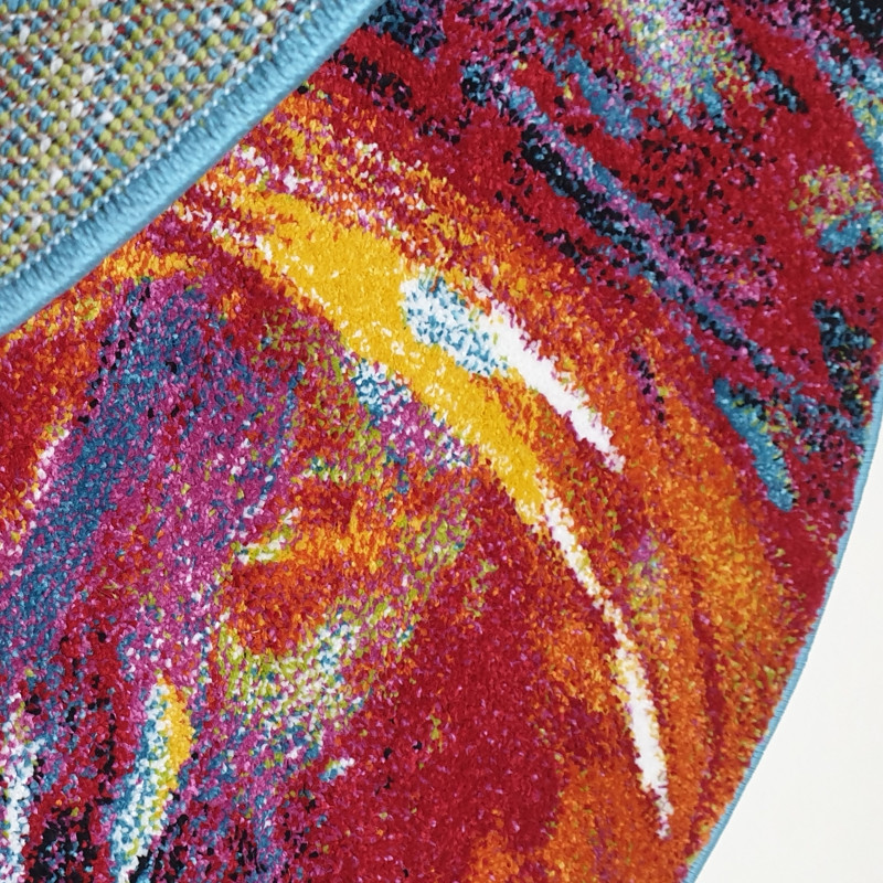 Kruhový extravagantný koberec Fantasy je ako stvorený do moderného interiéru, kde sa stane ústredným prvkom. Farby sú skutočne výrazné a spontánne. Jeho vlas je vyrobený z polypropylénu heatset free, ktorý mu prináša jemnosť v odolnom tele. Dĺžka vlasu je tak akurát, aby bol koberec jednoduchý na čistenie a pritom veľmi pohodlný na chôdzu alebo ležanie.