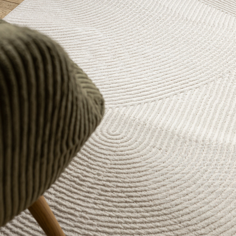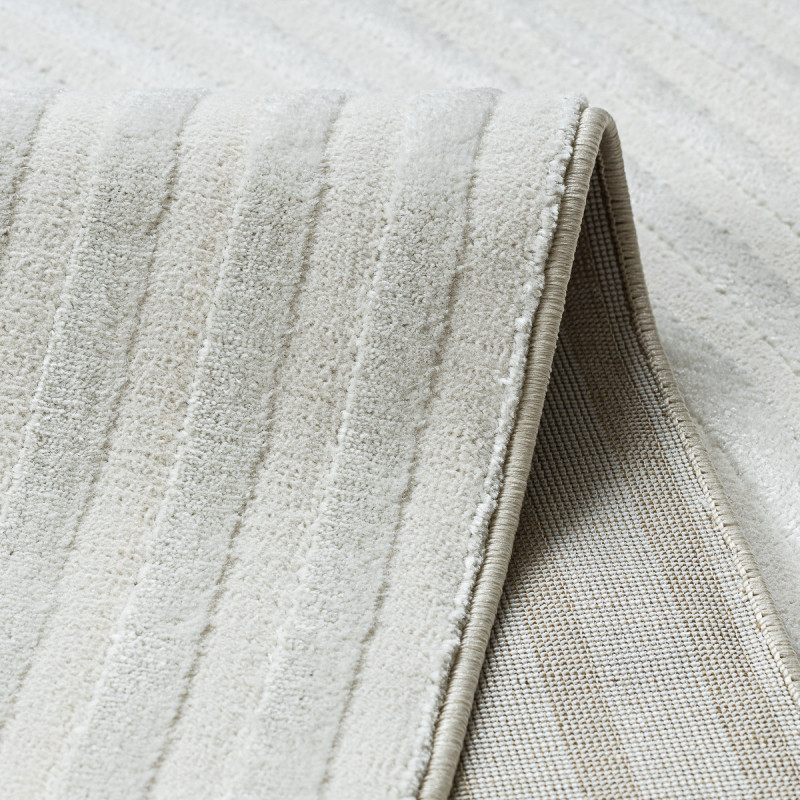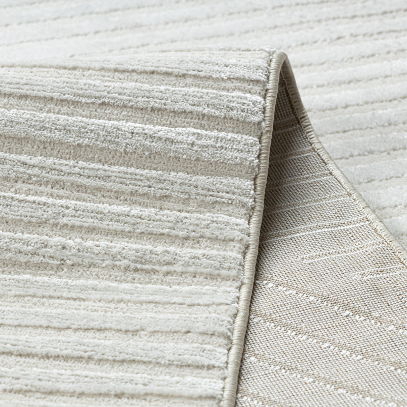 Koberec Balance 1503 cream je ako pokojná hladina jazera, do ktorej niekto kreslí jemné vlny. Krémový odtieň navodzuje pocit čistoty a ľahkosti, zatiaľ čo geometrický motív so šikmými líniami vnáša do priestoru rytmus a pohyb. Vďaka typu vlasu dvoch výšok sa na koberci krásne láme svetlo a vytvára jemnú hru tieňov, ktorá nikdy neomrzí. Materiál z...