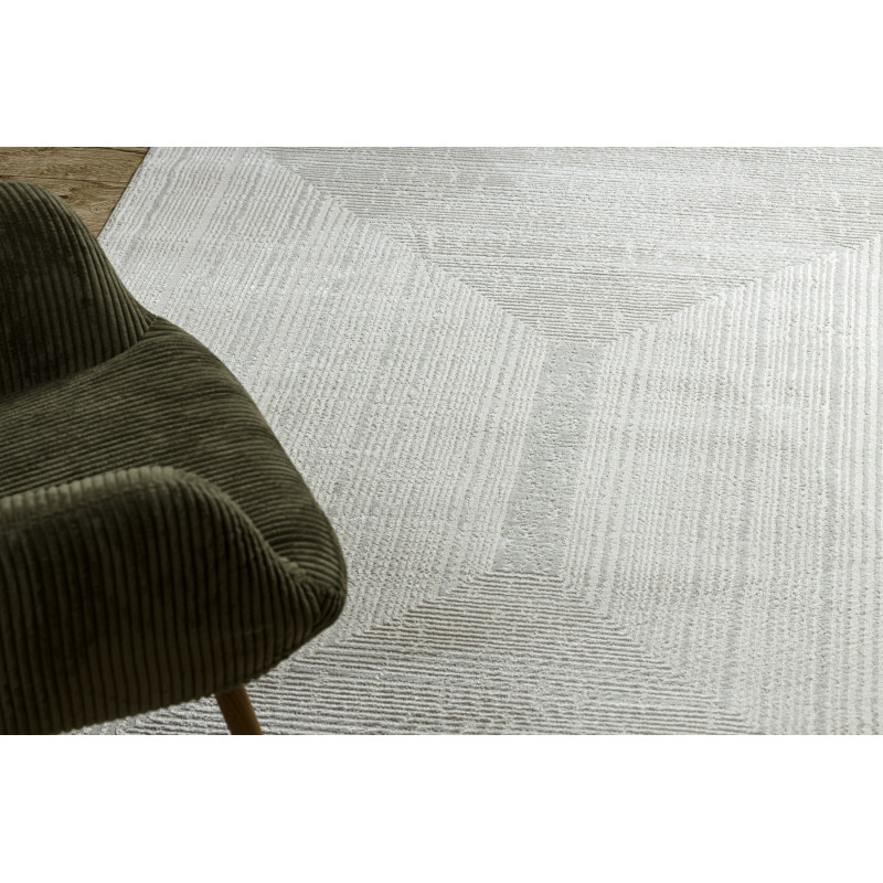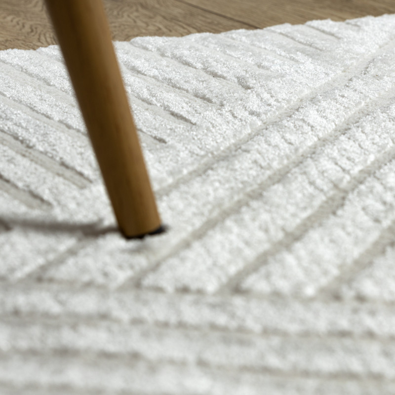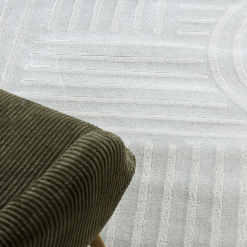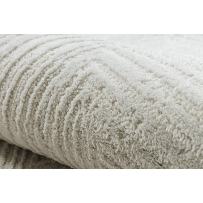 Koberec Balance 0194 cream v jemnej krémovej farbe a obdĺžnikovom tvare je vyrobený z polypropylénu a polyesteru. Vďaka dvojúrovňovému vlasu získava zaujímavú plastickú štruktúru s elegantným geometrickým vzorom, ktorý pôsobí moderne a nadčasovo. Krémový odtieň opticky rozjasní miestnosť a krásne zapadne do minimalistických, moderných aj boho interiérov....