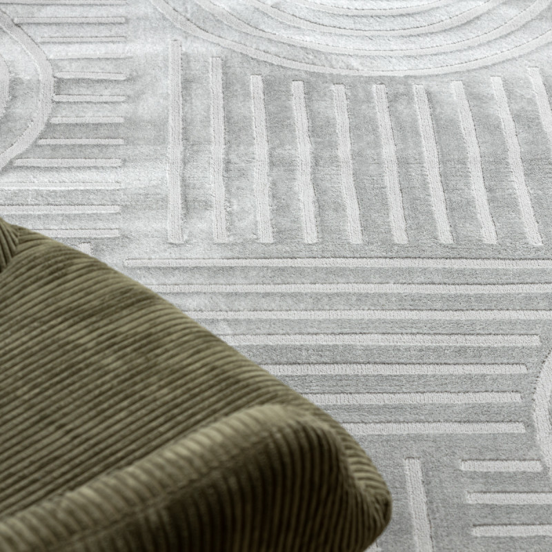 Koberec Balance 0194 grey pripomína pokojnú kresbu ceruzkou, kde sa kruhy a línie pretínajú v harmonickom tanci. Jemná šedá farba prináša do interiéru pokoj a rovnováhu, zatiaľ čo vlas dvoch výšok vytvára plastický motív, ktorý sa pohráva so svetlom a tieňom. Tento koberec je ako jemný podklad pre váš každodenný príbeh, nenápadný a pritom jedinečný. Vďaka...
