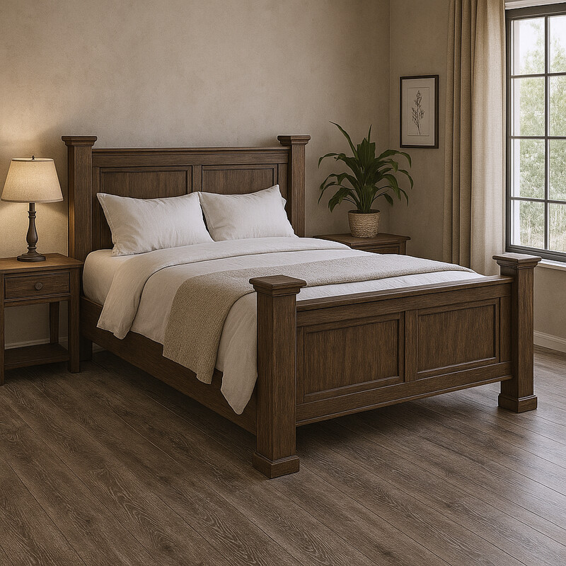 Estetika dreva s komfortom laminátu - dekorové prevedenie napodobní prírodné drevo, zatiaľ čo konštrukcia zaručuje stabilitu, odolnosť a jednoduchšiu údržbu.
