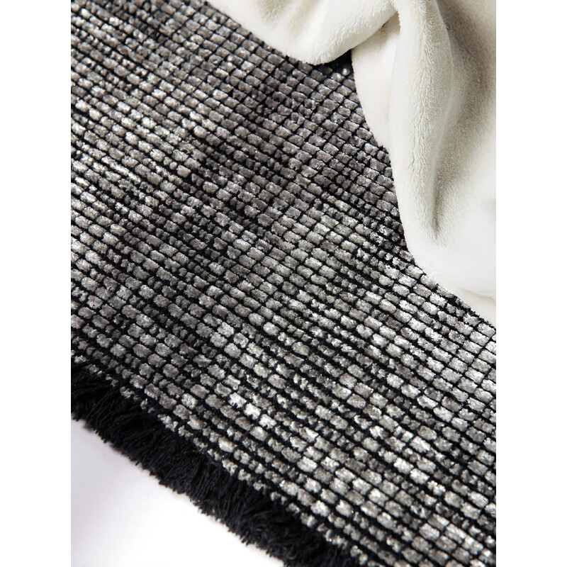 Šedo-strieborný behúň pôsobí elegantne vďaka jemnému lesku, ktorý sa pri dopade svetla premieňa na decentnú hru odtieňov. Štruktúra s nízkym strihaným vlasom vytvára hladký, sofistikovaný povrch s motívom pripomínajúcim drobné mozaikové dlaždice. Kratšie strany zdobia jemné strapce, zatiaľ čo dlhšie sú starostlivo obšité pre čistý a upravený vzhľad....