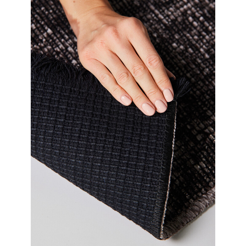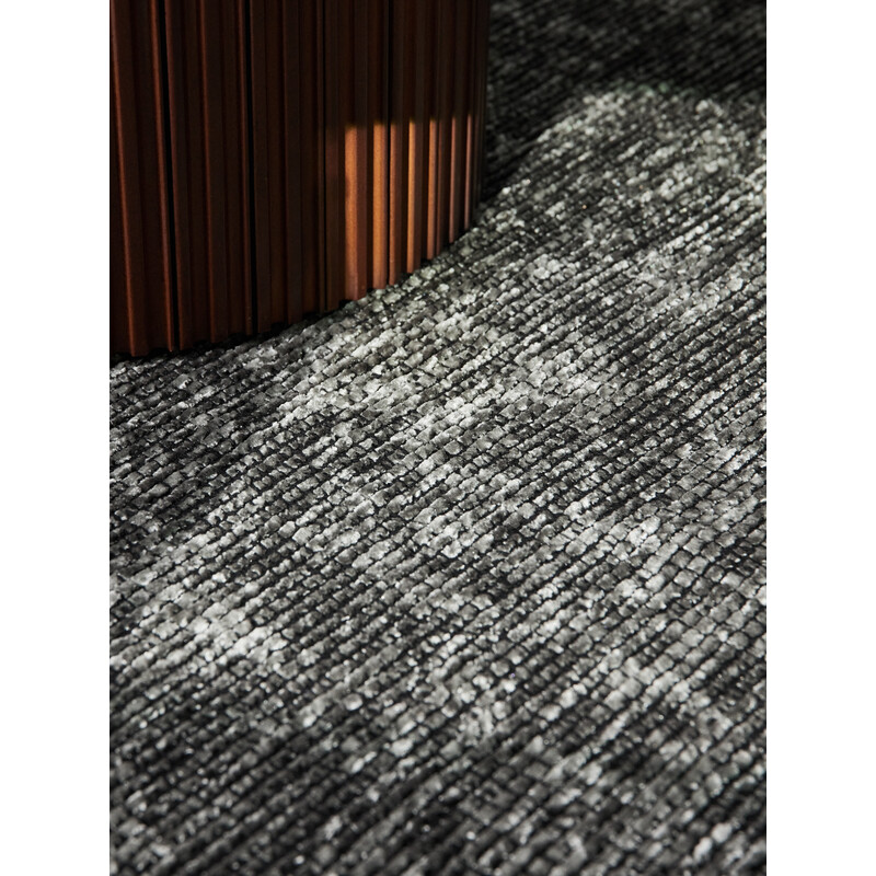 Šedo-strieborný koberec pôsobí elegantne vďaka jemnému lesku, ktorý sa pri dopade svetla premieňa na decentnú hru odtieňov. Štruktúra s nízkym strihaným vlasom vytvára hladký, sofistikovaný povrch s motívom pripomínajúcim drobné mozaikové dlaždice. Kratšie strany zdobia jemné strapce, zatiaľ čo dlhšie sú starostlivo obšité pre čistý a upravený vzhľad....