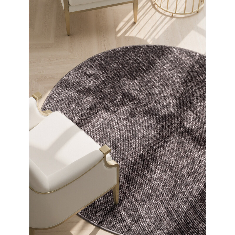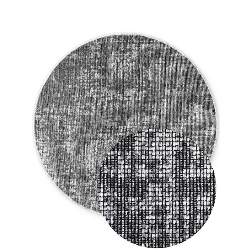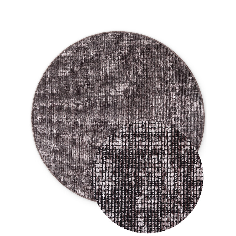 Šedo-strieborný kruhový koberec pôsobí elegantne vďaka jemnému lesku, ktorý sa pri dopade svetla premieňa na decentnú hru odtieňov. Štruktúra s nízkym strihaným vlasom vytvára hladký, sofistikovaný povrch s motívom pripomínajúcim drobné mozaikové dlaždice. Obvod koberca je starostlivo obšitý pre čistý a upravený vzhľad. Materiál je odolný, ľahko sa...