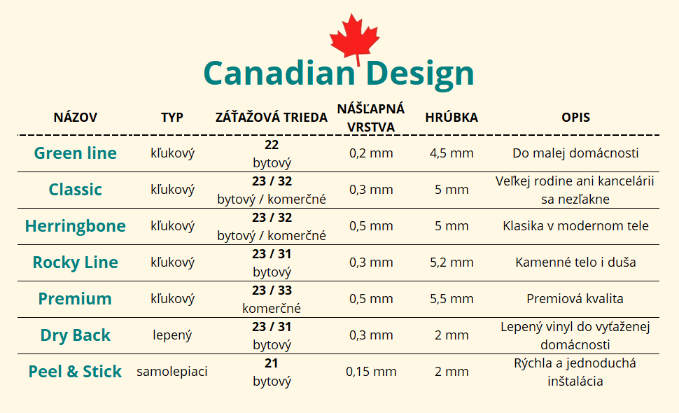 Vinylová podlaha Canadian Design Rocky Line stavia na výrazný kamenný dekor, ktorý v sebe môže pripomínať surový kameň aj elegantný mramor, a pritom zostáva dokonale moderný. Patrí medzi RIGID SPC podlahy, takže sa len tak niečoho nezľakne. Vďaka pevnému telu z minerálnych vlákien zvládne vysokú záťaž v domácnostiach aj v komerčných priestoroch a zároveň si uchováva nadčasový, prirodzený vzhľad inšpirovaný kameňom. Vinylová podlaha Canadian Design je certifikovaná, zdravotne nezávadná a bez obáv ju môžete položiť aj do miest, kde sa občas objaví vlhkosť, napríklad do kuchyne, chodby alebo predsiene. Integrovaná podložka zaisťuje príjemnejšiu a tichšiu chôdzu a uľahčuje samotnú pokládku.