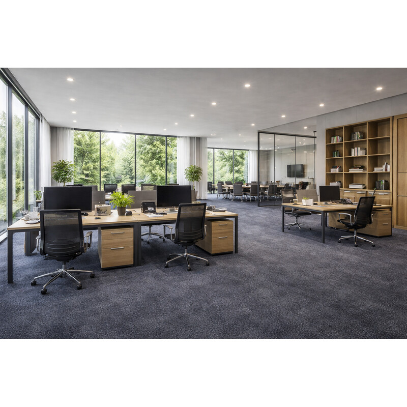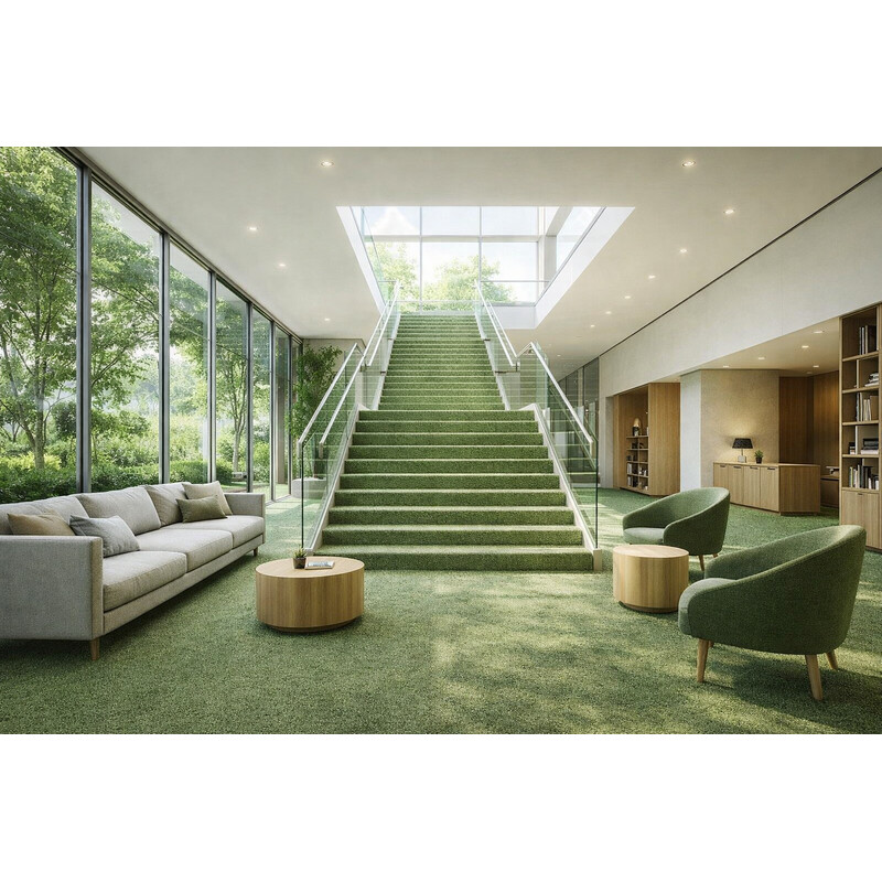 S týmto metrážnym kobercom bude každá kanceláriu alebo trieda vyzerať ako krásne upravený trávnik. Jedná sa však o textilné podlahovú krytinu, ktorá je vyrobená z pevného polyamidu a má krátky smyčkový vlas. Medzi jej prednosti patrí ľahká údržba alebo kompatibilita s kolieskami stoličiek.