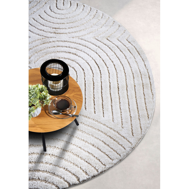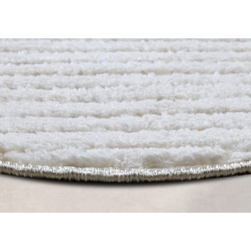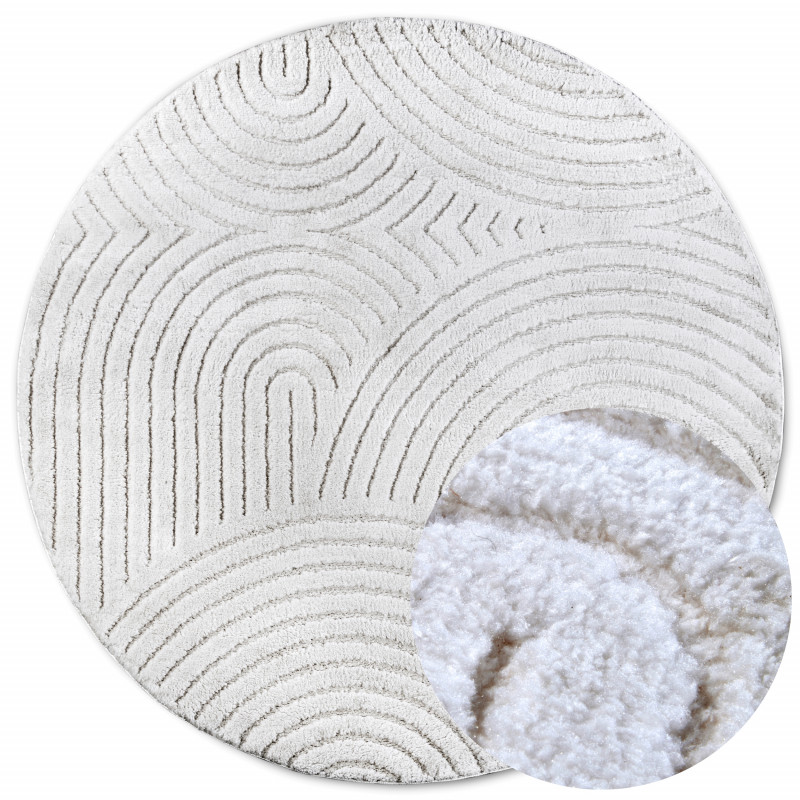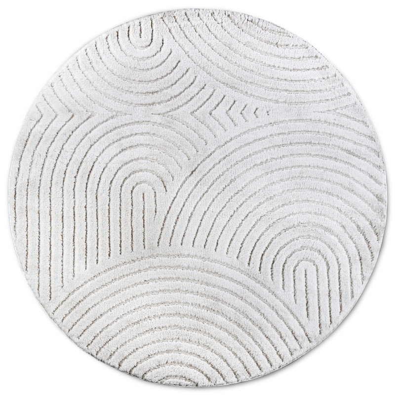 Moderný kruhový koberec v elegantnej bielej farbe je z mäkkého polyesteru, ktorý je nielen príjemný na dotyk, ale aj odolný a ľahko udržiavateľný. Vďaka strihanému vlasu a 3D motívu koberec pôsobí luxusným dojmom a prináša do interiéru unikátnu textúru. Rubová strana je opatrená latexom, čo zaisťuje stabilitu na podlahe. Môžete ho bez obáv použiť na...